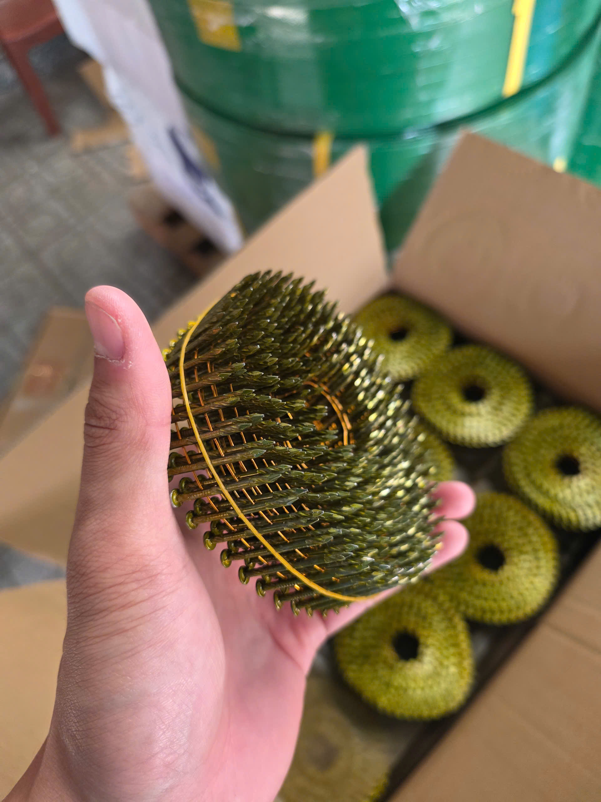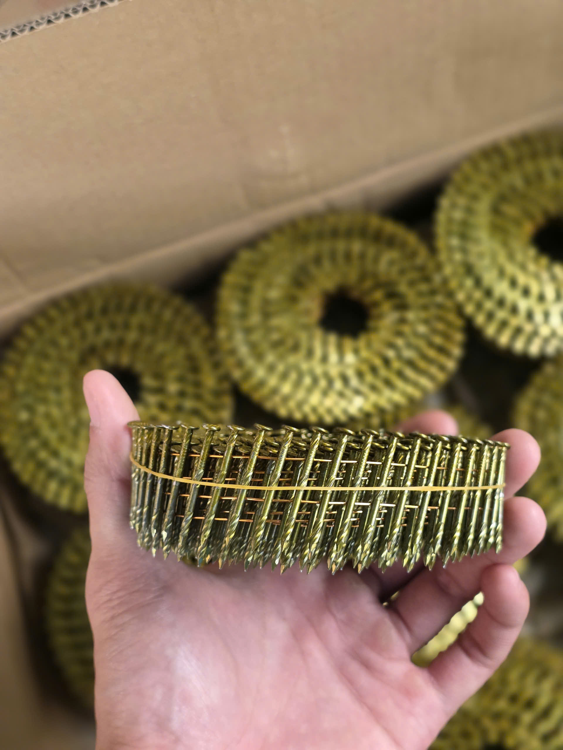 Đánh giá Mua đinh cuộn 2.1×32 giá sỉ tại Đồng Nai. 36 cuộn/thùng, 14.400 đinh/thùng, chuyên đóng pallet, thùng gỗ. Hàng sẵn kho, giao nhanh, giá tốt cho đại lý. Liên hệ ANAN ngay!