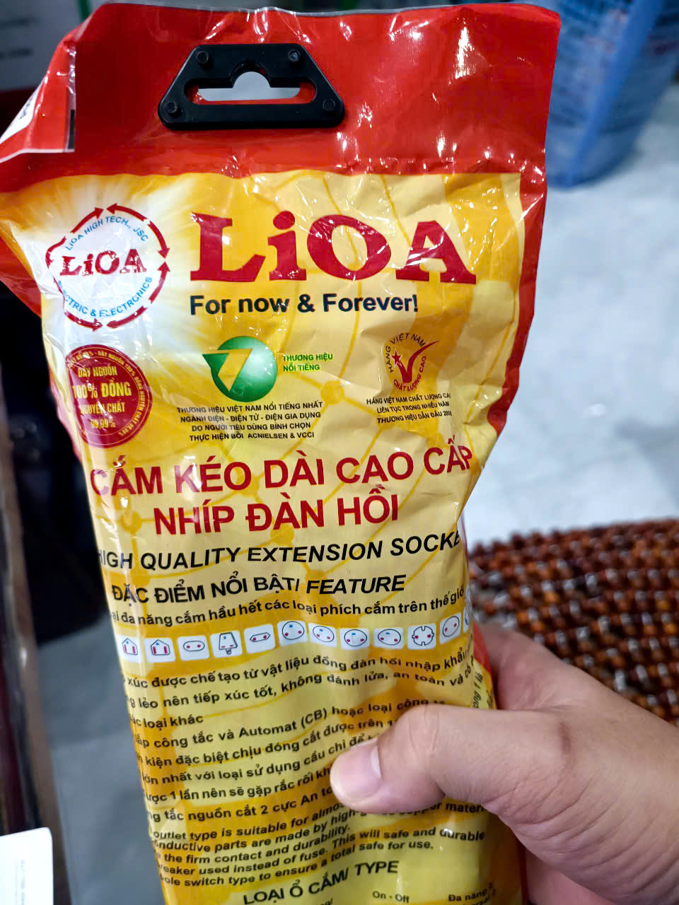 Ổ cắm tiêu chuẩn LIOA dài 5m 10A là sản phẩm chính hãng LIOA, được sản xuất tại Việt Nam theo tiêu chuẩn an toàn điện quốc gia. Với thiết kế chắc chắn, dây dẫn lõi đồng nguyên chất và khả năng chịu tải ổn định, ổ cắm LIOA là lựa chọn hàng đầu cho gia đình, văn phòng và nhà xưởng.